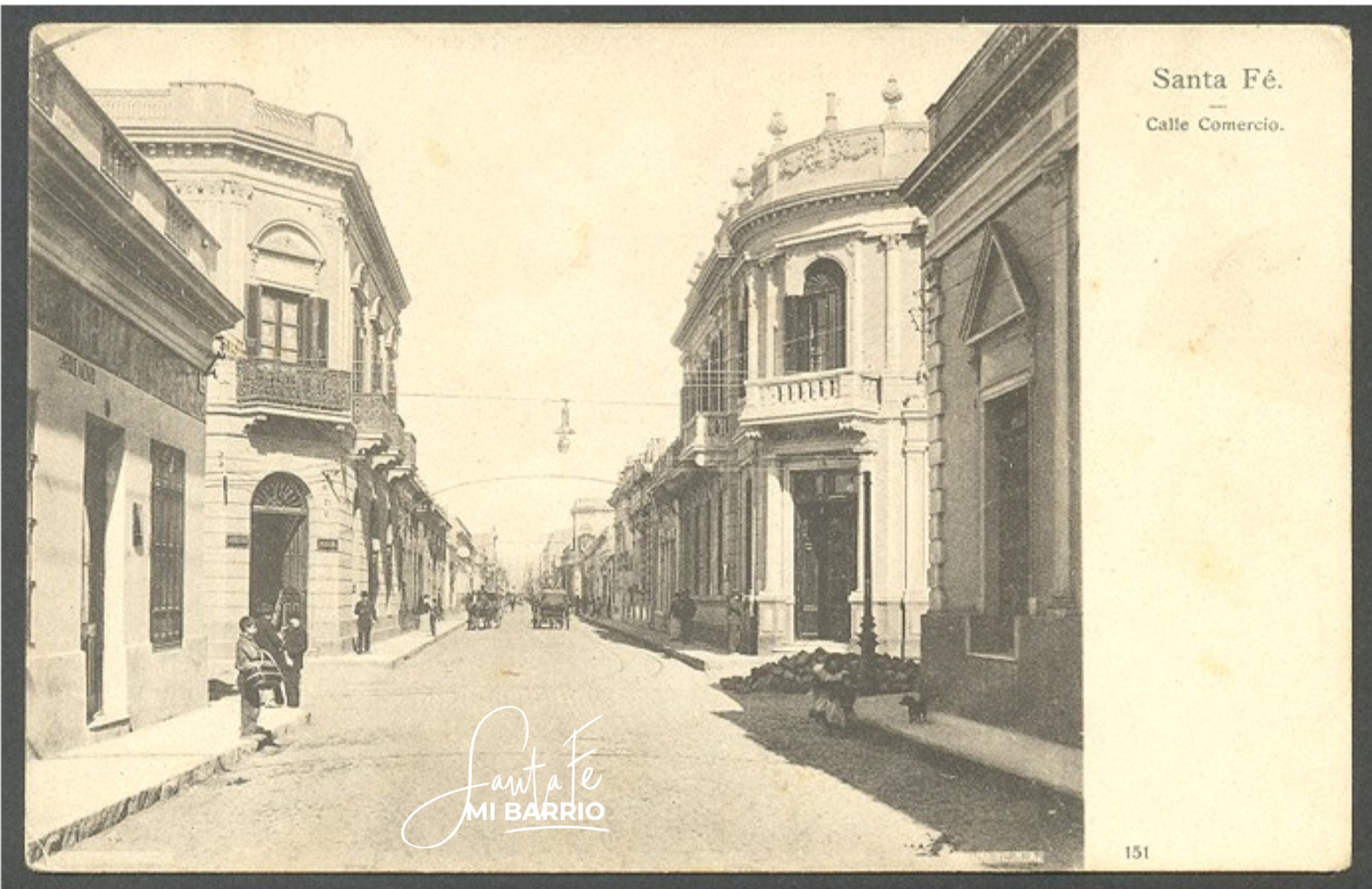 La Calle Comercio presentaba antes de su pavimentación, con adoquines de piedra primero y luego de algarrobo, la misma fisonomía del resto de las arterias de la pequeña ciudad. Luego de los albores de Mayo, en medio de la lucha santafesina por su autonomía federal, la provincia y la ciudad, estaban inmersas en una contienda desigual en lo numérico por sus fuerzas militares y pertrechos, y especialmente en la diferencia de poderío económico al enfrentarse con la fuerte provincia de Buenos Aires. Esta disputa tenía graves consecuencias para el desarrollo del comercio, la economía, el progreso. No fue sino hasta la pacificación devenida con la caída de Rosas que un ciclo medianamente positivo para las arcas santafesinas comenzó a darse, más allá de que ya no existían conflictos bélicos permanentes. El tiempo posterior a la sanción de la Constitución Nacional fue de un pausado adelanto, muy lento, en especial para la zona sur, mientras la llegada de los primeros inmigrantes iba en forma paulatina hacia un cambio de la fisonomía, especialmente de Juan de Garay hacia el norte.