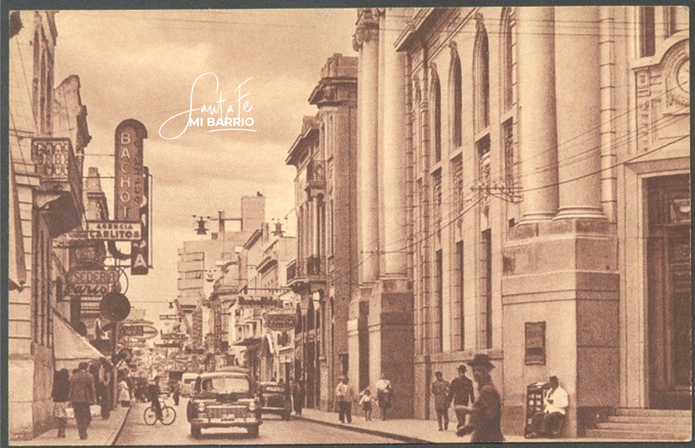 Ese barrio del Centro, además lindaba en forma lateral con el viejo puerto de cabotaje. Vale aclarar que en sí misma, esta zona portuaria, la antigua y la nueva del 1900 que cambió la fisonomía de la ciudad al este sobre el riacho Santa Fe, será materia específica tratada en el capítulo sobre el Barrio del Puerto. No obstante, como límites arbitrarios, y difusos con superposiciones en algunos sectores, el Barrio Centro tiene su inicio sobre calle Juan de Garay, otrora frontera norte del casco de la trasladada “Santa Fe la Vieja” a la “Santa Fe de la Vera Cruz”. El río, y sus barrancas con muelles estarían dando límite por el este, pero en términos de calles se podría decir que 25 de Mayo representa ese punto para escindir la historia que miraba hacia el puerto, también más al norte desde Rivadavia al este, y hacia el ejido urbano, al oeste. Por el norte el límite se adentra en la “recoleta” santafesina para llegar hasta bulevar Gálvez, por entre Plaza España y el barrio Constituyentes. Por el oeste, la marca inescindible es calle Urquiza. Así delimitado, el Barrio Centro tuvo su propia dinámica de progreso, su historia, casi tan antigua como la ciudad trasladada desde 1660, con numerosas instituciones y con el signo de los inmigrantes y su diversificación de actividades y de prácticas culturales que dejaron su sello por las calles del “centro”.