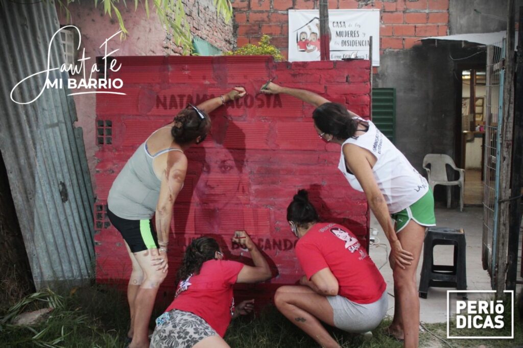 —Exactamente. No queremos lo impuesto, queremos lo nuestro. Queremos hacer lo que nos gusta de la manera que nos gusta, sin que nos guíen en ese hacer. Porque hay centros culturales que son hermosos en Santa Fe y a veces vos entrás y hasta te da miedo tocar cosas, porque parecen museos. Y nosotras queremos habitar los espacios de otra manera. Acá pintamos nuestros murales, elaboramos nuestras consignas, esas que tienen que ver con la inundación, con la reivindicación de la memoria y la justicia o con la misma Marielle, representando a una mujer villera, afavelada, latina. Estas cosas que por ahí no encontramos en esa hegemonía son las que queremos representar y por eso lo hacemos a nuestra manera.