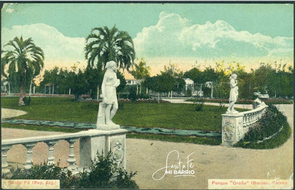 Caracterizado paseo santafesino, en palabras rescatadas de la publicación “Para Conocernos”, se puede mencionar que se trataba de un espacio verde con “Un prolijo trazado de los jardines, su pérgola, el jardín francés con la hermosa fuente, la caja armónica, grupos escultóricos, numerosos bancos de madera y bien cuidadas especies florales y variedad de árboles, dentro de un diámetro oval, caracterizaban al Parque Oroño ubicado al sur del acceso al puente Colgante, entre el murallón costanero y la calle Grand Bourg, teniendo como límite sur la prolongación ideal de la calle Ituzaingó, junto al Club de Regatas…”. Tenía ese aire costero y señorial, adornado de rumores de la isla pero también de los “Ford a bigote”, y de la banda de música de la Policía que una vez por semana tocaba en su caja armónica.