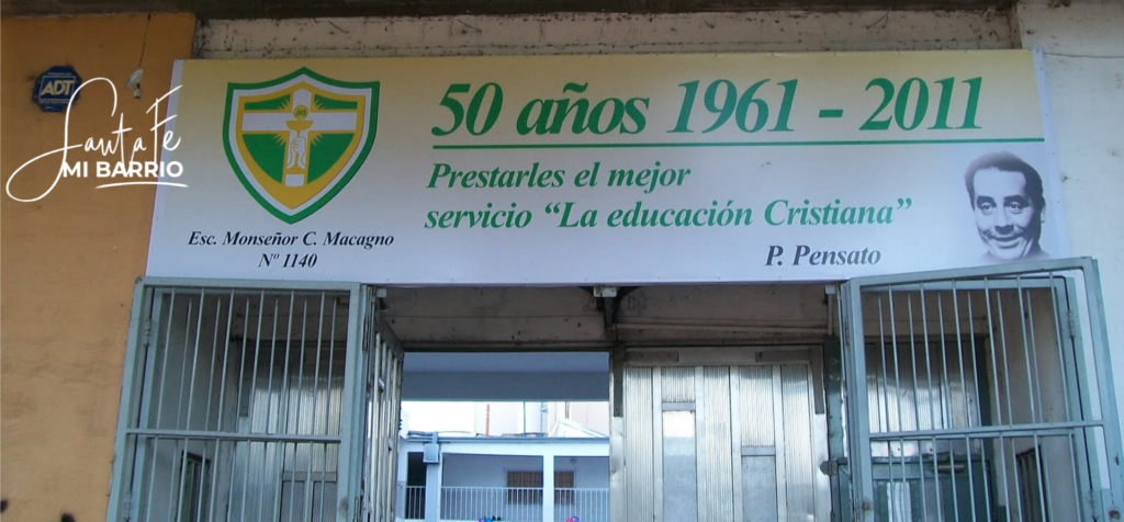 La Escuela Particular Incorporada Nº 1.140 Monseñor Carlos Macagno dio sus primeros pasos en 1953 junto a la parroquia. La decisión surgió del Consejo Parroquial, junto con el párroco, quienes vieron la necesidad y la importancia de una educación cristiana en la población. Se ofreció a las familias del barrio la posibilidad de contar con una escuela parroquial donde sus hijos -desde los 4 años- tuviesen una escolaridad a la luz de las enseñanzas evangélicas.