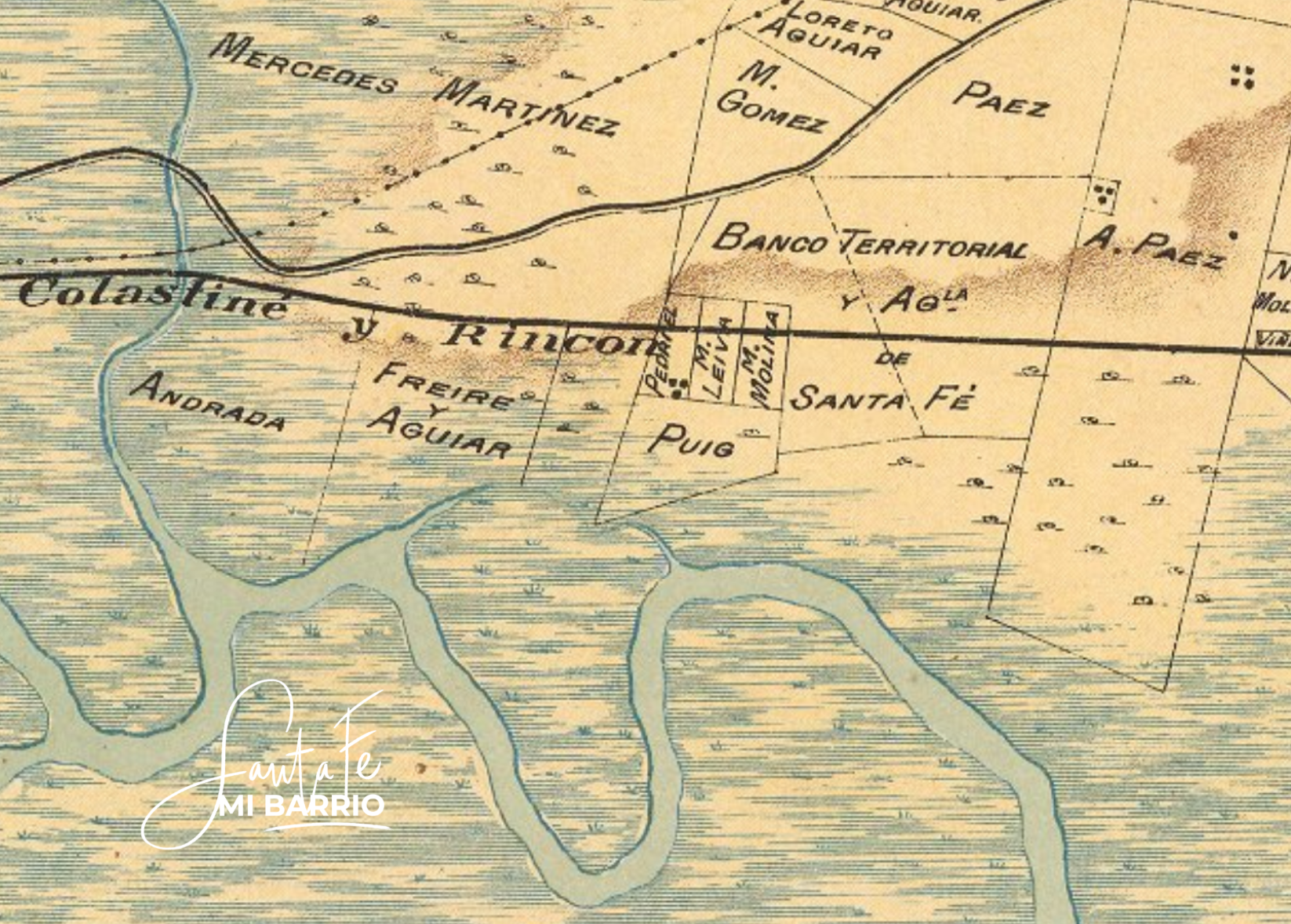 En un plano de la zona realizado por el agrimensor Chapeaurouge en 1903 la zona de La Guardia aparece con dos grandes propietarios, y en su parte central, como tierra fiscal. Algunos terrenos coinciden en el ángulo que hoy se encuentra urbanizado dentro del recinto de defensas y que pertenecía en parte al Banco Territorial y Crédito, subsidiaria de la empresa Ferrocarril Santa Fe. Más hacia el oeste aparecen en el plano de 1903 los terrenos de Pedriel (con una construcción graficada), de M Leiva, M Molina, y hasta la orilla de la curva del riacho, un predio de Puig, y luego otro campo a nombre de Freire y Aguiar, y uno más de Andrada, que incluiría a la Bajada Distéfano.